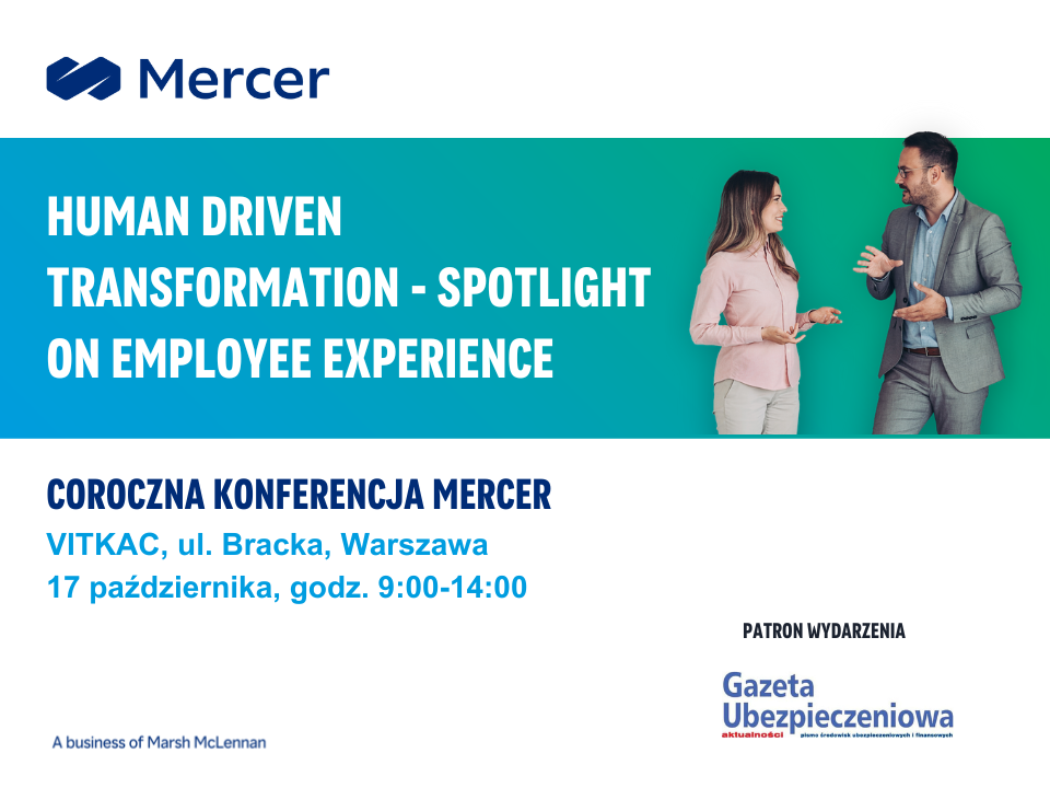 17 października w Warszawie odbędzie się doroczna konferencja Mercer. Patronem medialnym spotkania pod hasłem „Human driven transformation – spotlight on Employee Experience” jest „Gazeta Ubezpieczeniowa”.
