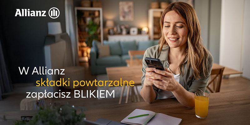 Allianz Polska jako pierwszy ubezpieczyciel w Polsce udostępnił klientom sześciu banków możliwość opłacania składek powtarzalnych BLIKIEM. Z tej opcji mogą skorzystać posiadacze większości indywidualnych ubezpieczeń na życie, którzy płacą składki co miesiąc, co kwartał lub co rok.