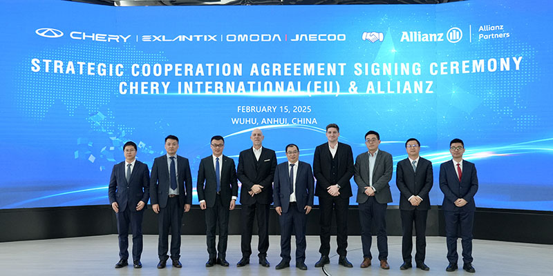 Allianz Partners podpisał porozumienie o strategicznej współpracy obejmującej rynki europejskie z firmą Chery International, chińskim producentem samochodów. W ramach partnerstwa Chery będzie opracowywać programy ubezpieczeń oraz usługi, obejmujące OC, AC, pomoc drogową oraz rozszerzenie gwarancji na nowe/używane pojazdy i akumulatory (EXW), a także usługi dodatkowe dla sprzedaży aut i flot komercyjnych w Europie.