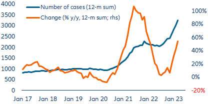 Allianz Trade spodziewa się, że w 2023 r. liczba upadłości przedsiębiorstw prawdopodobnie wzrośnie o 30%.