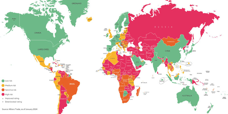 W pierwszej edycji „Country Risk Atlas – Atlasu Ryzyka Biznesowego Krajów” oceniającego czynniki ekonomiczne, polityczne i ESG wpływające na ryzyko braku płatności dla firm Allianz Trade podwyższył 21 ratingów ryzyka krajów i obniżył tylko 4 oceny, co wskazuje na zwiększoną odporność pomimo globalnych wstrząsów. Z analizy ubezpieczyciela wynika m.in., że najgorsze już poza Polską, ale ożywienie będzie łagodne.