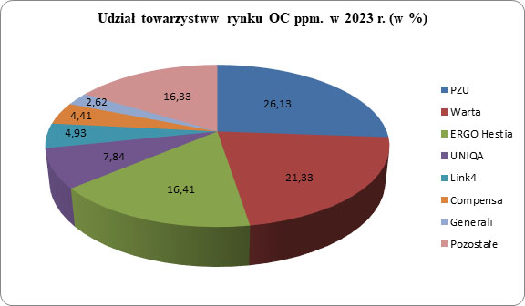 Liderem wśród krajowych zakładów (a jednocześnie całego rynku) w segmencie obowiązkowych polis komunikacyjnych był PZU SA z przypisem składki na poziomie 4,21 mld zł. Jego wynik był o 6,4% wyższy od uzyskanego rok wcześniej, tj. 3,96 mld zł. Na drugim miejscu znalazło się TUiR Warta z wynikiem 3,44 mld zł, który był o 8,57% wyższy od ubiegłorocznego (3,17 mld zł). Na najniższym stopniu podium uplasowała się ERGO Hestia, która zebrała 2,65 mld zł (2,61 mld zł przed rokiem, +1,22% r/r).