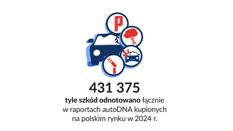 W przypadku pojazdów po wypadkach próg szkody całkowitej osiąga się zdecydowanie szybciej. Jeśli samochód ma ukryte uszkodzenia konstrukcyjne, naprawa nawet relatywnie drobnej szkody może okazać się ekonomicznie nieopłacalna. Skala problemu jest zauważalna – w 2024 r. raporty autoDNA wykazały aż 431 375 szkód w historii aut.