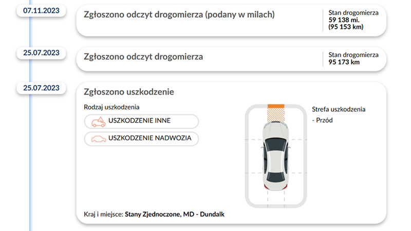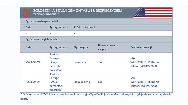 Podstawowym krokiem jest sprawdzenie numeru VIN. Darmowe bazy rządowe pozwalają pozyskać podstawowe informacje, lecz znacznie szerszy zakres danych zapewniają wieloźródłowe raporty – np. autoDNA. W przypadku aut z USA raporty zawierają szczegółowe informacje, takie jak: