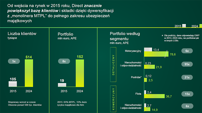 2 kwietnia 2025 roku Direct pojišťovna oficjalnie rozpoczęła działalność operacyjną w Polsce. Debiut poprzedziła starannie przeprowadzona transakcja przejęcia portfela OC/AC od wefox insurance AG, zatwierdzona przez trzech regulatorów: czeski CNB, polską KNF oraz FMA Liechtenstein. Transfer objął także infrastrukturę agencyjną. Kontynuowana jest współpraca z Unext, który pełni funkcję przedstawiciela w zakresie dystrybucji, likwidacji szkód i obsługi klienta.