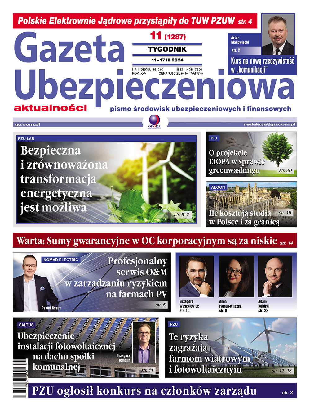 - Michał Janiszewski, PZU: Te ryzyka zagrażają farmom wiatrowym i fotowoltaicznym – str. 12