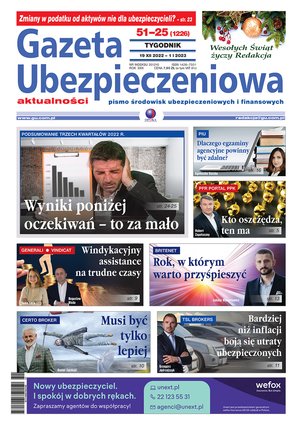 - Grzegorz Jędrzejczyk, TSL BROKERS: Bardziej niż inflacji boją się utraty ubezpieczonych – str. 11
