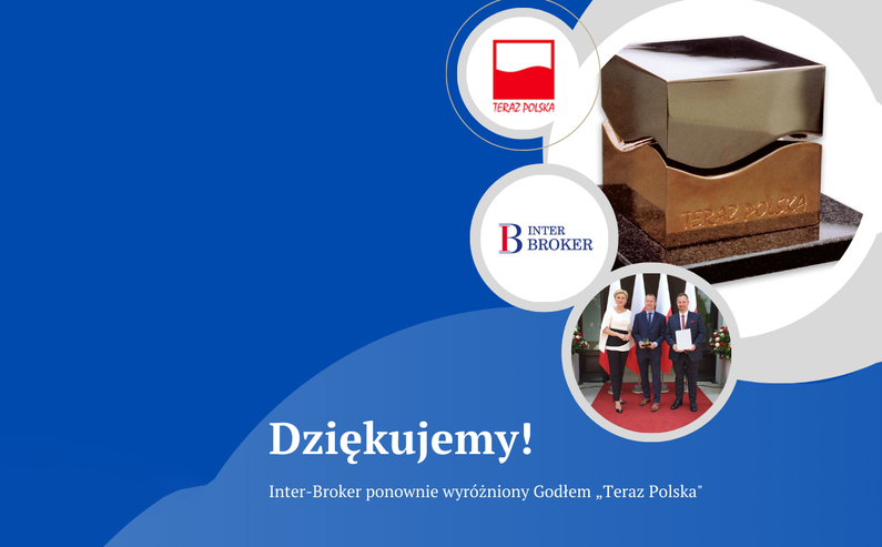 Po raz drugi kapituła konkursu na godło „Teraz Polska” po weryfikacji zdolności Inter Broker do zwiększania kompetencji i widoczności marki na rynku doceniła pracę, potencjał i zaangażowanie w rozwój firmy, udzielając jej prawa do posługiwania się logo „Teraz Polska” na okres trzech kolejnych lat.