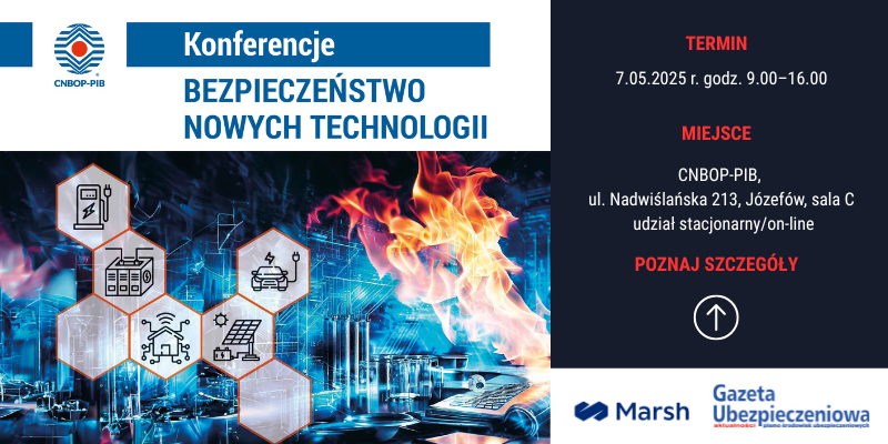 7 maja 2025 roku odbędzie się IV międzynarodowa konferencja naukowa „Bezpieczeństwo Nowych Technologii”. Tegoroczna odsłona wydarzenia będzie poświęcona bezpieczeństwu pożarowemu instalacji fotowoltaicznych, magazynów energii, pojazdów elektrycznych, ich punktów i stacji ładowania, rozwiązań inteligentnego domu i tym podobnym. Patronem medialnym konferencji organizowanej przez Centrum Naukowo-Badawcze Ochrony Przeciwpożarowej – Państwowy Instytut Badawczy jest „Gazeta Ubezpieczeniowa”.
