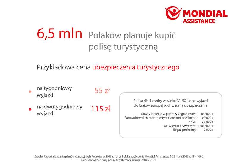Badanie Plany Wakacyjne Polaków 2023 zostało zrealizowane na zlecenie Mondial Assistance przez Ipsos Polska w dniach 4–25 maja 2023 roku. Badanie odbyło się w terminie zbliżonym do realizacji w poprzednich falach badania. To dało możliwość rzetelnej analizy trendów i zmian w zachowaniach Polaków planujących wakacje. Maj został wybrany na czas realizacji badania, gdyż to w tym miesiącu większość Polaków nie tylko planuje wyjazdy wakacyjne, ale też podejmuje niezbędne formalności z nimi związane. Badanie przeprowadzono za pomocą wywiadów ilościowych techniką CATI (wspomagany komputerowo wywiad telefoniczny) na ogólnopolskiej próbie reprezentatywnej ze względu na płeć, wiek i wielkość miejscowości. Wielkość próby badawczej – 1600 osób.