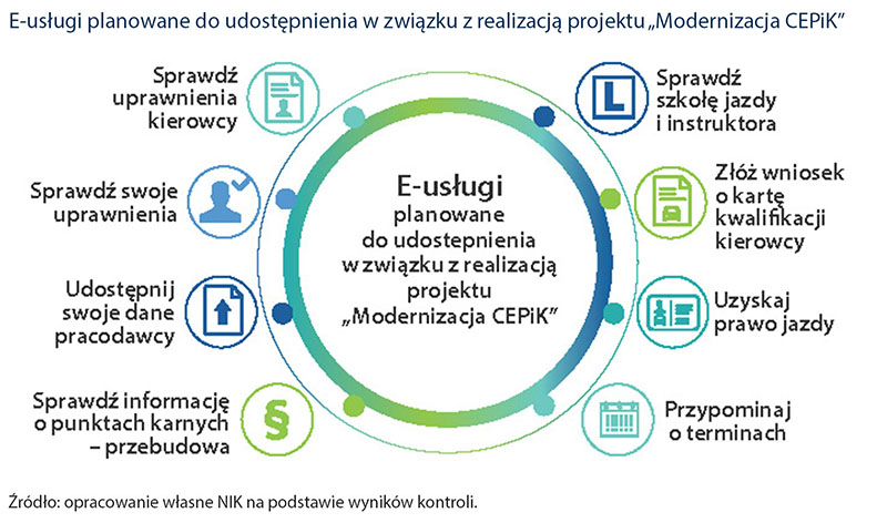 Minister Cyfryzacji wprawdzie zapewnił utrzymanie i rozwój systemu Centralnej Ewidencji Pojazdów i Kierowców, jednak nie zawarto umowy na realizację kluczowego elementu projektu „Modernizacja CEPiK”, który ma rozszerzyć i scentralizować źródła danych, a także poprawić funkcjonalność systemu, umożliwiając np. elektroniczne złożenie wniosku o uzyskanie prawa jazdy. Zmian wymagają również usługi, z których już można korzystać. Użytkownicy narzekają m.in. na czasochłonność wprowadzania danych i wyszukiwania informacji czy też niezgodność między informacjami, które ich dotyczą, a tymi, które znajdują się w Ewidencji – wynika z raportu Najwyższej Izby Kontroli.