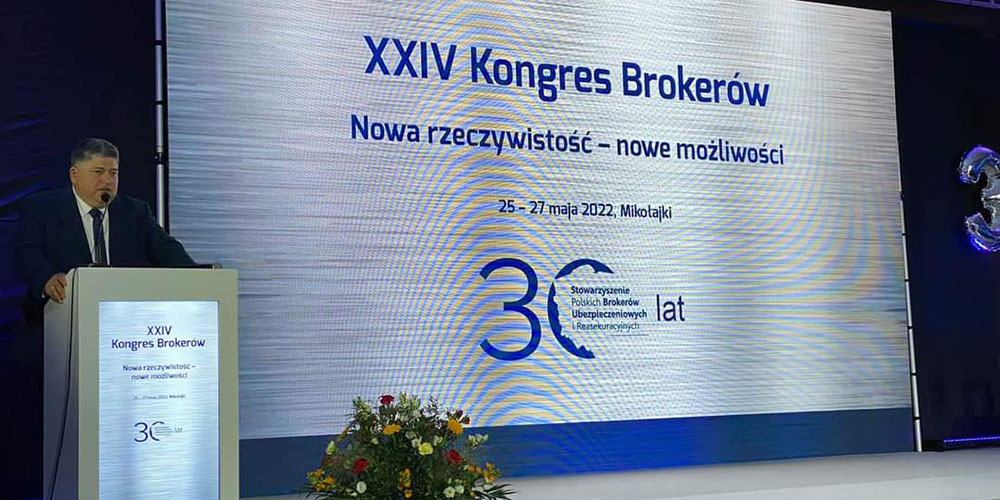 XXIV Kongres Brokerów w Mikołajkach odbywa się pod hasłem „Nowa rzeczywistość, nowe możliwości”. W jubileuszowym roku (w marcu minęło dokładnie 30 lat od założenia Stowarzyszenia Polskich Brokerów Ubezpieczeniowych i Reasekuracyjnych) organizatorzy zanotowali rekordową frekwencję – ponad 1100 osób. Gości przywitał prezes Łukasz Zoń.