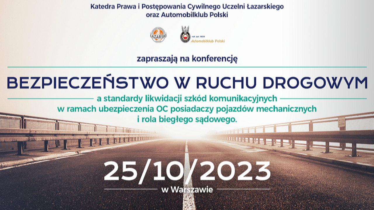 25 października 2023 roku w Warszawie odbędzie się konferencja prawno-techniczna pt. „Bezpieczeństwo w ruchu drogowym a standardy likwidacji szkód komunikacyjnych w ramach ubezpieczenia OC posiadaczy pojazdów mechanicznych i rola biegłego sądowego”. Patronem medialnym wydarzenia organizowanego przez Uczelnię Łazarskiego jest „Gazeta Ubezpieczeniowa”.