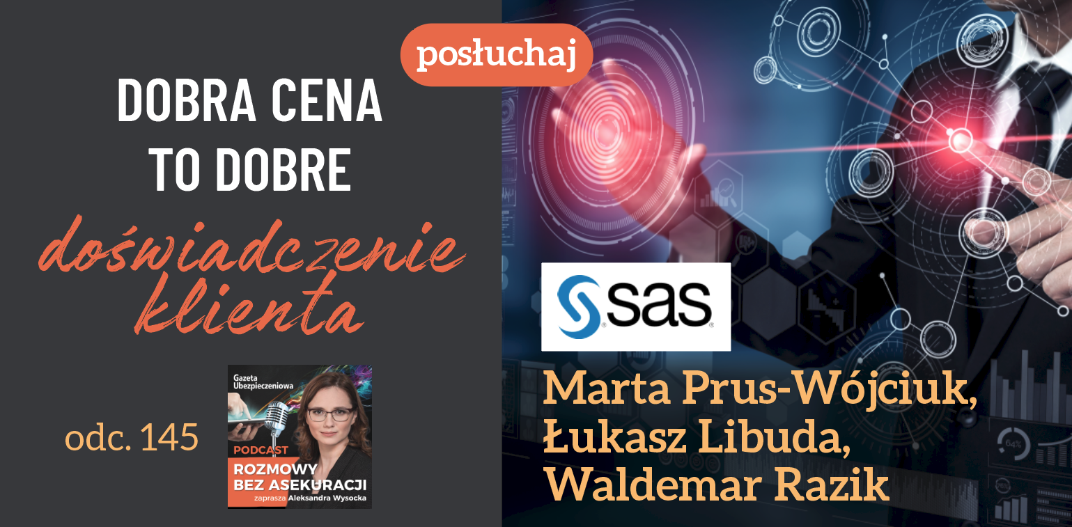 Czym jest dobra cena dla klienta, a czym dla ubezpieczyciela? Czy możliwa jest klientocentryczność bez zaawansowanej analityki danych? O tym w podcaście ubezpieczeniowym #RozmowyBezAsekuracji mówią Marta Prus-Wojciuk, Łukasz Libuda i Waldemar Razik z SAS.