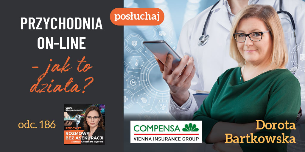 Co warto wiedzieć o nowym produkcie Przychodnia Online? O tym w podcaście #RozmowyBezAsekuracji mówi Dorota Bartkowska, dyrektorka Departamentu Ubezpieczeń Zdrowotnych w firmie Compensa.