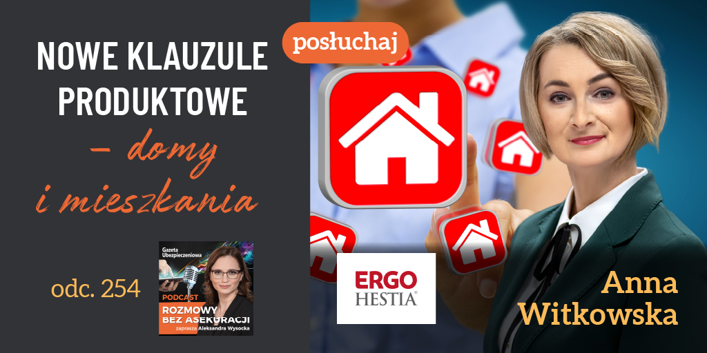 O nowych klauzulach produktowych w ubezpieczeniach domów i mieszkań w podcaście ubezpieczeniowym #RozmowyBezAsekuracji mówi Anna Witkowska, zastępczyni dyrektora Biura Ubezpieczeń Detalicznych i Programów Partnerskich w Dziale Zarządzania Produktami, ERGO Hestia. Rozmawia Aleksandra E. Wysocka.