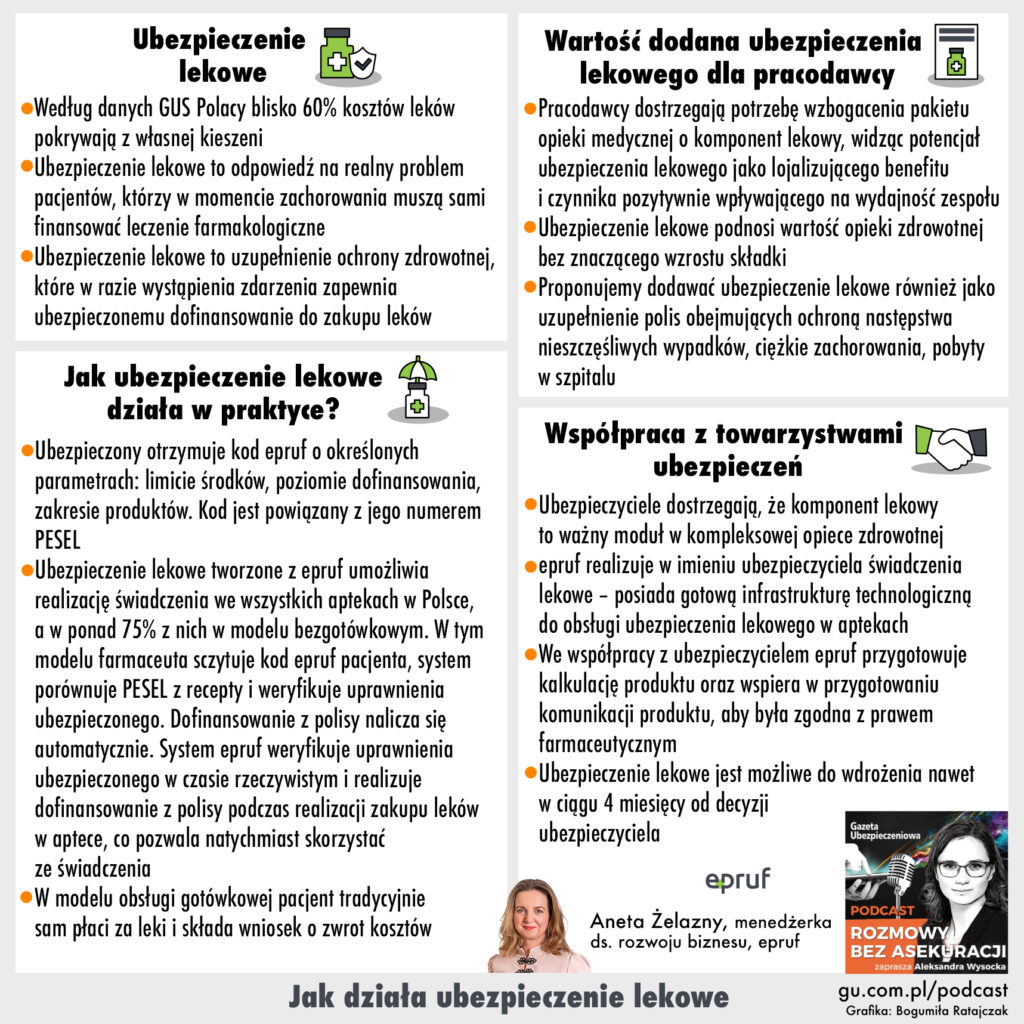 O tym, jak działa ubezpieczenie lekowe, mówi w podcaście #RozmowyBezAsekuracji Aneta Żelazny, menedżerka ds. rozwoju biznesu, epruf. Rozmawia Aleksandra E. Wysocka.
