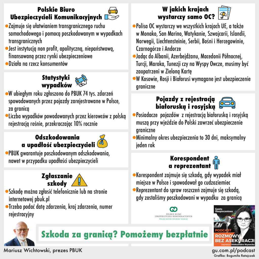 O szkodach komunikacyjnych za granicą mówi w podcaście #RozmowyBezAsekuracji Mariusz Wichtowski, prezes PBUK. Rozmawia Aleksandra E. Wysocka.