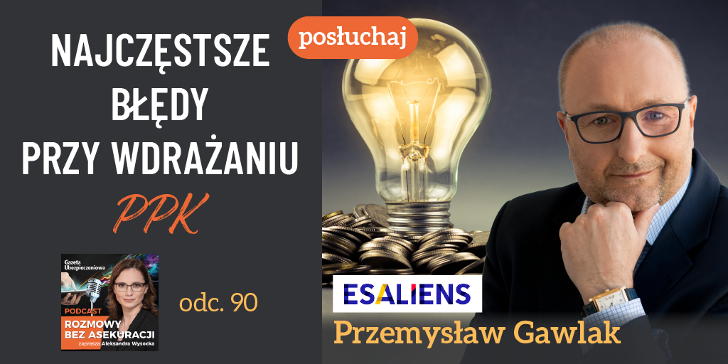 Pierwsza runda wyścigu o wdrożenie pracowniczych planów kapitałowych w polskich firmach dobiega końca. Zdecydowana większość firm zatrudniających ponad 250 osób już wybrała dostawcę PPK. Gościem podcastu ubezpieczeniowego „Rozmowy bez asekuracji” jest Przemysław Gawlak z Esaliens TFI. Z audycji dowiecie się:
