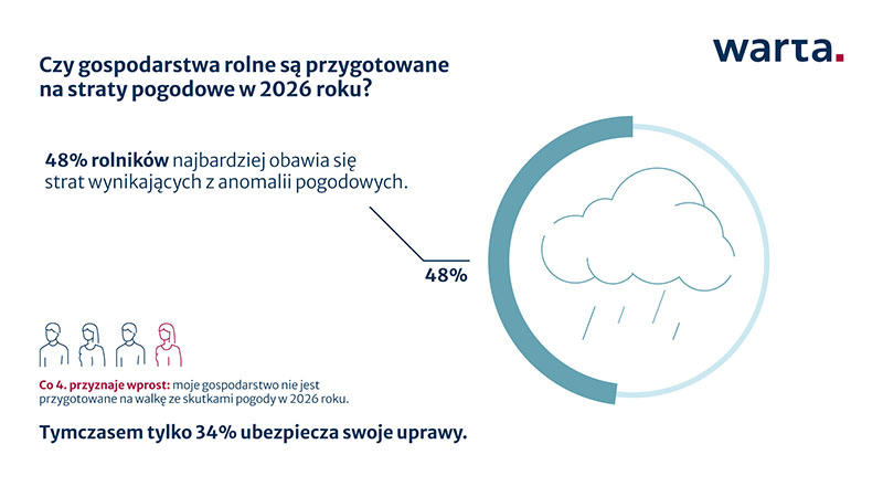 Wyniki najnowszego badania przeprowadzonego przez agencję Fieldstat na zlecenie Warty potwierdzają, że anomalie pogodowe stały się największym wyzwaniem dla rodzimej wsi. Aż połowa rolników wskazuje je jako swoje główne zmartwienie w nadchodzącym sezonie. W odpowiedzi na te alarmujące dane Warta w swojej ofercie ubezpieczeń rolnych stawia na elastyczność i unikatowe w skali rynku rozszerzenia.