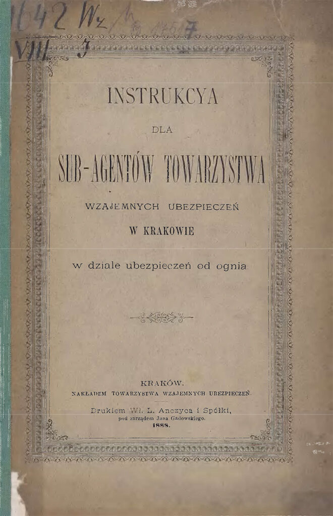 Instrukcja dla Sub-Agentów Towarzystw wzajemnych ubezpieczeń w Krakowie w dziale ubezpieczeń od ognia z 1888 r.