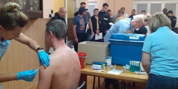 Szczepienia wykonują dwa zespoły wyjazdowe z opolskiego oddziału PZU Zdrowie. W kolejnych dniach pracownicy spółki będą szczepili również inne grupy osób zaangażowanych w pomoc powodzianom.