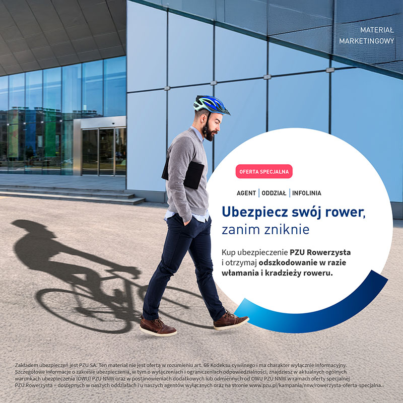 PZU rusza z kampanią promującą nową ofertę specjalną ubezpieczenia PZU Rowerzysta. Polisa zapewnia wsparcie między innymi w przypadku nieszczęśliwych wypadków oraz włamania i kradzieży roweru.