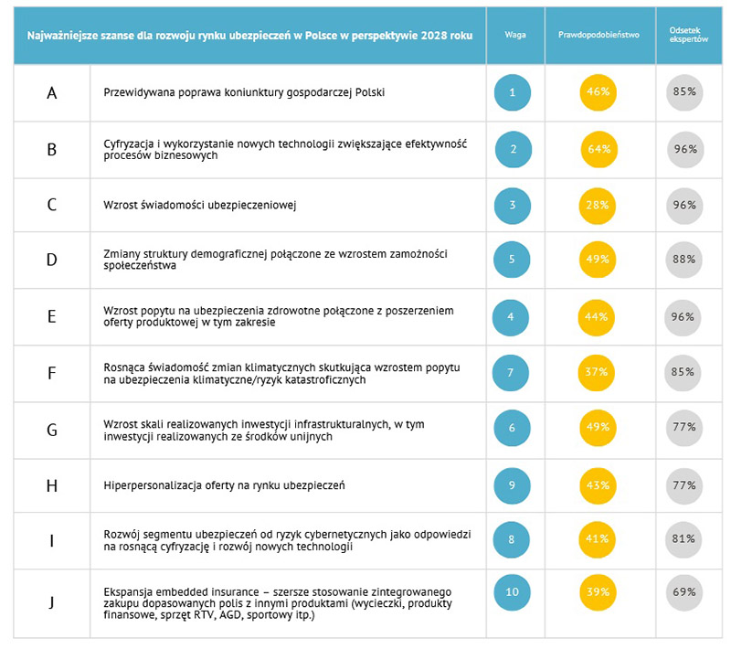 Eksperci przypisali tym czynnikom najwyższą wagę (16,9 pkt), wskazując, że przekładają się one na wzrost kosztów reasekuracji, utrudnioną wycenę szkód i większą niepewność inwestycyjną.