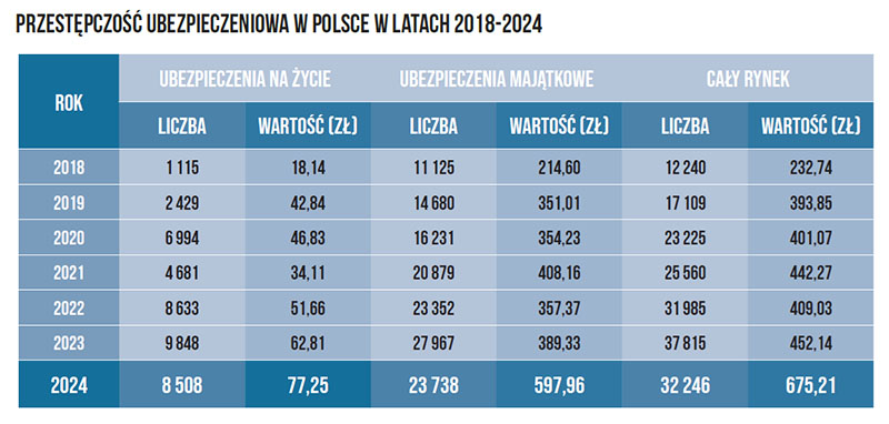 Tymczasem dane za 2024 r. zaprezentowane w raporcie Polskiej Izby Ubezpieczeń z maja 2025 r. pokazują zupełnie inną rzeczywistość. Wykryta wartość nadużyć przekroczyła 675 mln zł, a więc sumę, która wprost wpływa na ceny, politykę ryzyka i ostatecznie na portfele uczciwych klientów. Przestępczość ubezpieczeniowa nie jest marginesem, ale zjawiskiem, które zmienia strukturę kosztów całego rynku.