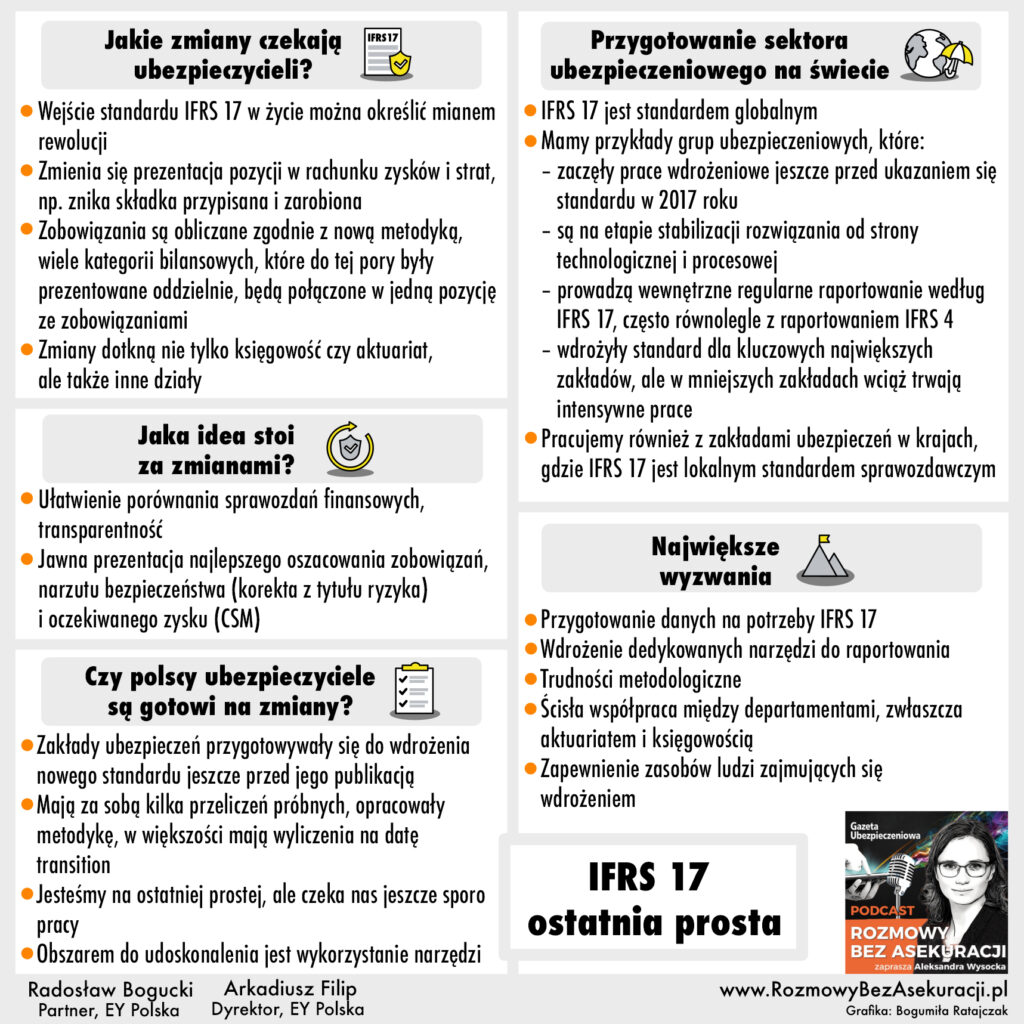 Podczas podcastu eksperci opisali zmiany w raportowaniu finansowym, jakie czekają zakłady ubezpieczeń w 2023 i jaki jest cel tych zmian. Podzielili się też swoimi opiniami na temat największych wyzwań w procesie implementacji IFRS 17 i sposobu ich przezwyciężenia. Zrelacjonowali też poziom przygotowania sektora ubezpieczeniowego na świecie.