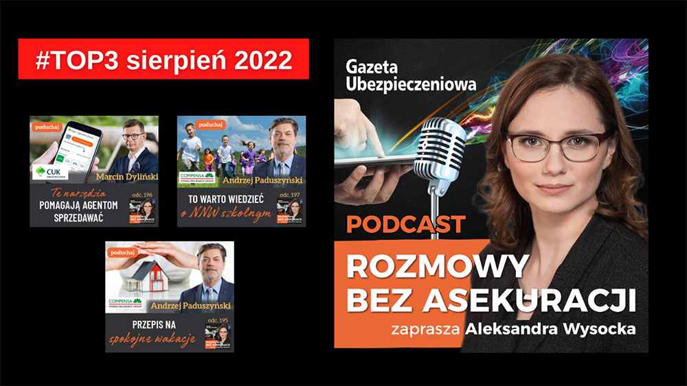 W minionym miesiącu najwięcej słuchaczy podcastów z cyklu „Rozmowy bez Asekuracji” zgromadziły odcinki poświęcone narzędziom wspierającym agentów w sprzedaży ubezpieczeń, NNW szkolnym oraz ubezpieczeniom zapewniającym spokój w czasie wakacji.