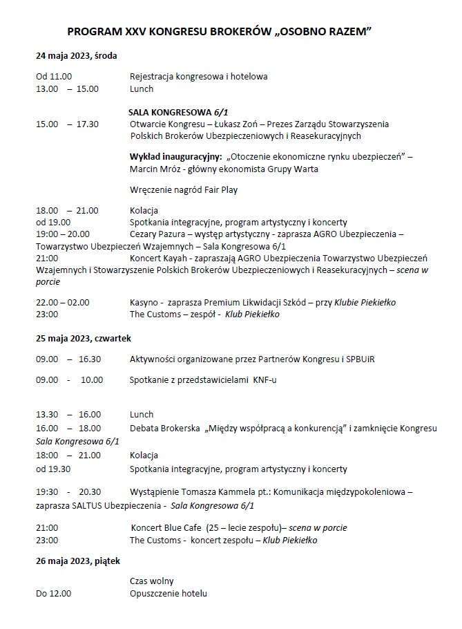 XXV Kongres Brokerów odbędzie się w Mikołajkach, w Hotelu Gołębiewski, w dniach 24–26 maja.