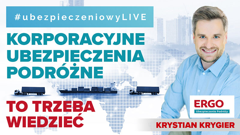 Zapraszamy na kolejną odsłonę programu #ubezpieczeniowyLIVE we wtorek 15 listopada w godzinach 13:00–13.30. Gościem odcinka zatytułowanego „Korporacyjne ubezpieczenia podróżne” będzie Krystian Krygier, starszy specjalista ds. ubezpieczeń korporacyjnych ERGO Ubezpieczenia Podróży.