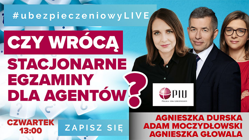 Zapraszamy na #ubezpieczeniowyLIVE w czwartek 1 grudnia w godzinach 13:00–13.30. Gośćmi odcinka zatytułowanego „Czy wrócą stacjonarne egzaminy dla agentów?” będą Agnieszka Głowala i Adam Moczydłowski z UNIQA Polska. Organizatorem wydarzenia jest Polska Izba Ubezpieczeń.