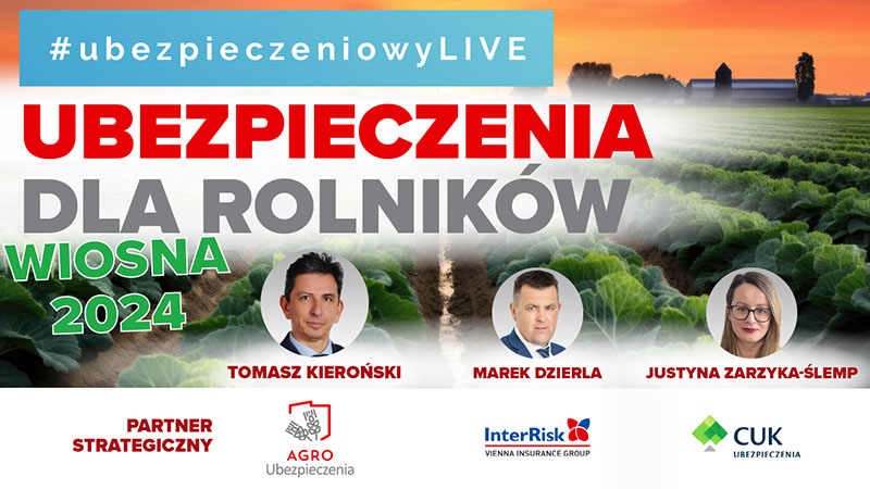 Zapraszamy na #ubezpieczeniowyLIVE, który odbędzie się w czwartek 22 lutego 2024 roku w godzinach 13:00–14.30. Partnerem strategicznym programu jest Agro Ubezpieczenia TUW.