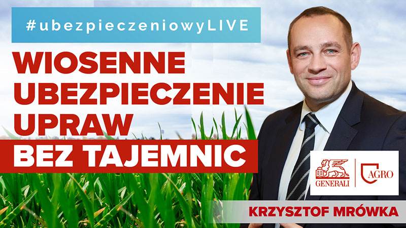 Zapraszamy na #ubezpieczeniowyLIVE, który odbędzie się we wtorek 19 marca 2024 roku w godzinach 13:00–14:00. Gościem programu będzie Krzysztof Mrówka, dyrektor Departamentu Ubezpieczeń Rolnych Generali Agro. Tematem odcinka będą wiosenne ubezpieczenia upraw rolnych.