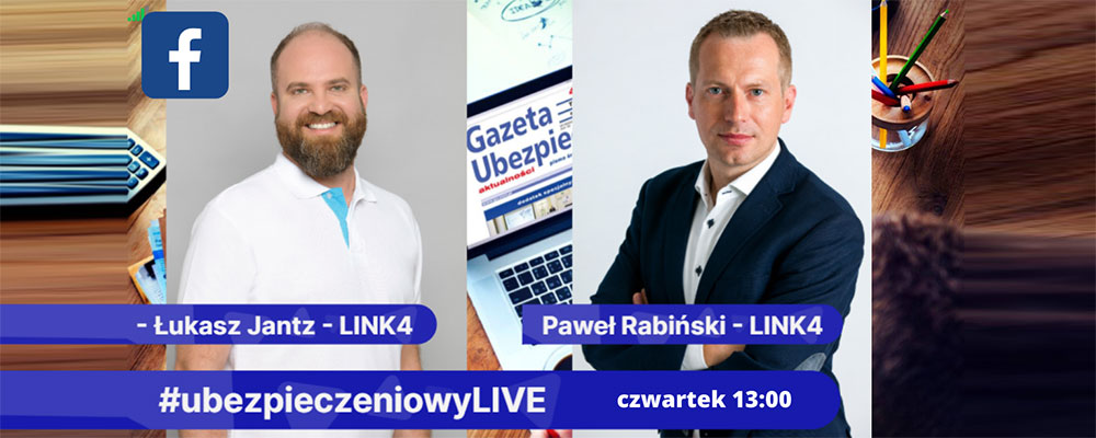 Łukasz Jantz i Paweł Rabiński z Link4 będą gośćmi najnowszej odsłony programu #ubezpieczeniowyLIVE, którą będzie można obejrzeć w czwartek 30 kwietnia 2020 r. Start transmisji o godz. 13.00.