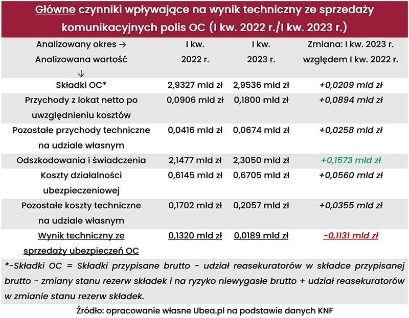 Z raportu Komisji Nadzoru Finansowego wynika, że przez trzy pierwsze miesiące 2023 r. krajowe zakłady ubezpieczeń zarobiły na sprzedaży OC ppm. jedynie 18,9 mln zł.