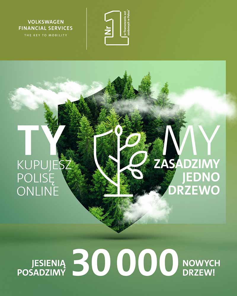 Volkswagen Financial Services we współpracy z Polskim Związkiem Zrzeszeń Leśnych kontynuuje działania na rzecz zrównoważonego rozwoju. W ramach rozpoczętej 20 kwietnia kolejnej edycji akcji „Ty kupujesz polisę online – my jesienią posadzimy drzewo” firma planuje posadzenie nawet 30 tys. tys. nowych drzew.