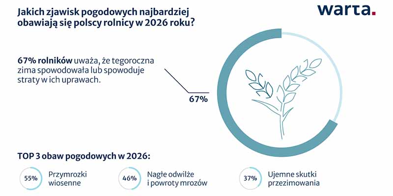 Wyniki tegorocznego badania mogą budzić nasze obawy jako ubezpieczycieli. Wciąż duża część rolników nie ubezpiecza swoich upraw przy jednoczesnym poczuciu ogromnego zagrożenia pogodowego. Pokazuje to dużą lukę w strategicznym zarządzaniu ryzykiem. Tegoroczna zima dobitnie udowodniła, że pogoda wciąż potrafi nas zaskakiwać i to pod wieloma względami. W dobie tak dużej zmienności klimatycznej samo obowiązkowe ubezpieczenie to często za mało. Aby realnie chronić swój warsztat pracy, rolnicy powinni stawiać na kompleksowe rozwiązania. Takie, które uwzględniają ryzyka dodatkowe (np. deszcz nawalny, huragan, zastoiska wodne), pamiętając jednocześnie, aby polisa odpowiadała realnej rynkowej wartości plonów. Tylko takie podejście pozwala odzyskać stabilność finansową po wystąpieniu szkody, które, jak pokazują dane, dotykają wielu polskich właścicieli gospodarstw – mówi Joanna Chudzik, ekspertka ubezpieczeń upraw w Warcie.