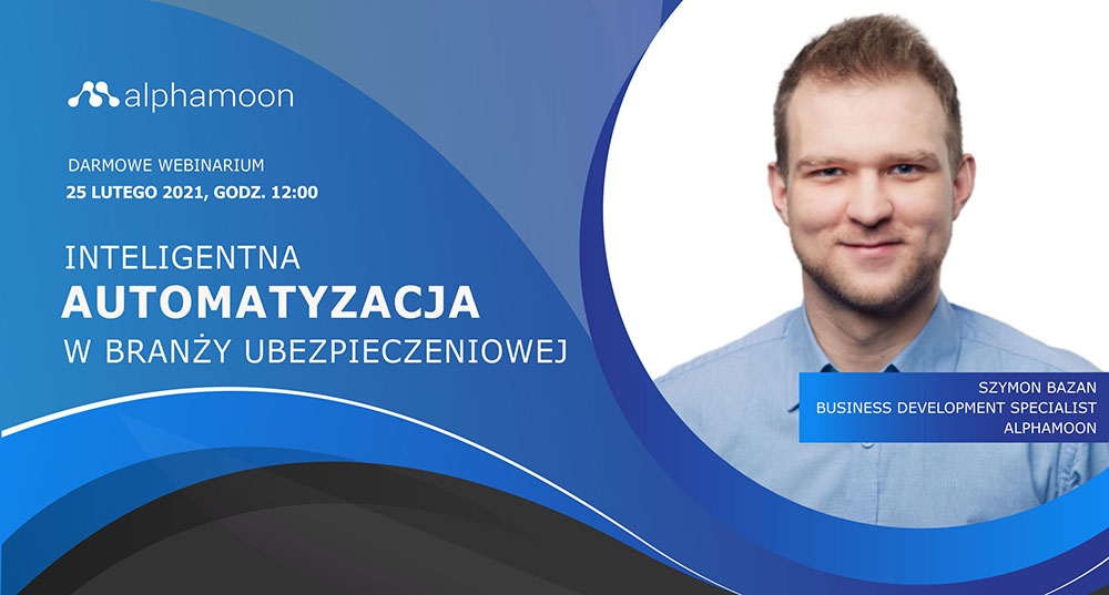 25 lutego o godzinie 12:00 odbędzie się webinarium „Inteligentna Automatyzacja w branży ubezpieczeniowej” organizowane przez Alphamoon – czołowego dostawcę rozwiązań z zakresu Inteligentnej Automatyzacji dla branży finansowej w Polsce.