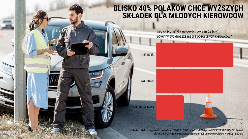 Blisko 40% uczestników badania UCE Research i Syno Poland dla Helper CPP uważa, że kierowcy w wieku 18–24 lata powinni płacić za OC posiadaczy pojazdów mechanicznych (ppm.) więcej niż obecnie. Jednak zdaniem ekspertów sama podwyżka nie poprawi bezpieczeństwa na drogach, a może jedynie doprowadzić do poważnego obchodzenia prawa.