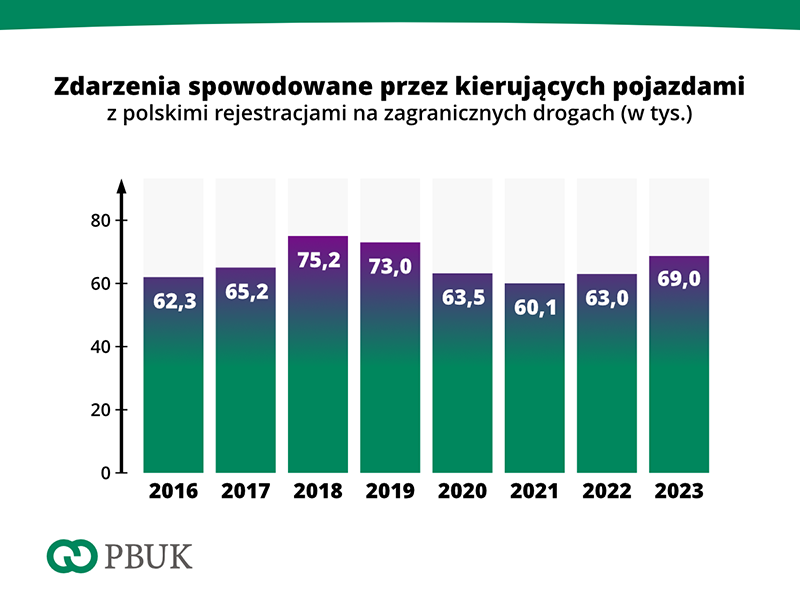 Kierujący pojazdami z polskimi tablicami rejestracyjnymi powodują na zagranicznych drogach prawie 190 zdarzeń dziennie. W całym 2023 r. byli sprawcami blisko 69 tys. kolizji i wypadków poza Polską. To o 9,4 % więcej niż w poprzednim roku.