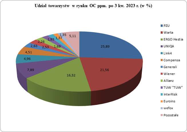 Z zestawienia Ubezpieczeniowego Funduszu Gwarancyjnego obejmującego dane przekazane przez 29 zakładów ubezpieczeń – 18 krajowych, 3 oddziały zagranicznych ubezpieczycieli i 8 firm funkcjonujących na zasadzie swobody świadczenia usług – wynika, że przez 3 kwartały obecnego roku przypis składki brutto z OC ppm. wyniósł 12,01 mld zł. Był to rezultat o 5,51% wyższy od odnotowanego rok wcześniej (11,38 mld zł).