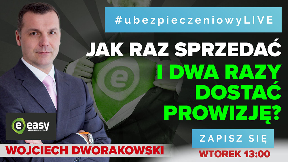 „Jak raz sprzedać i dwa razy dostać prowizję?” – taki tytuł nosi najnowsza odsłona programu #ubezpieczeniowyLIVE, który zostanie wyemitowany we wtorek 14 czerwca w godzinach 13:00–13:30. W odcinku wystąpi Wojciech Dworakowski z Easy Raty.